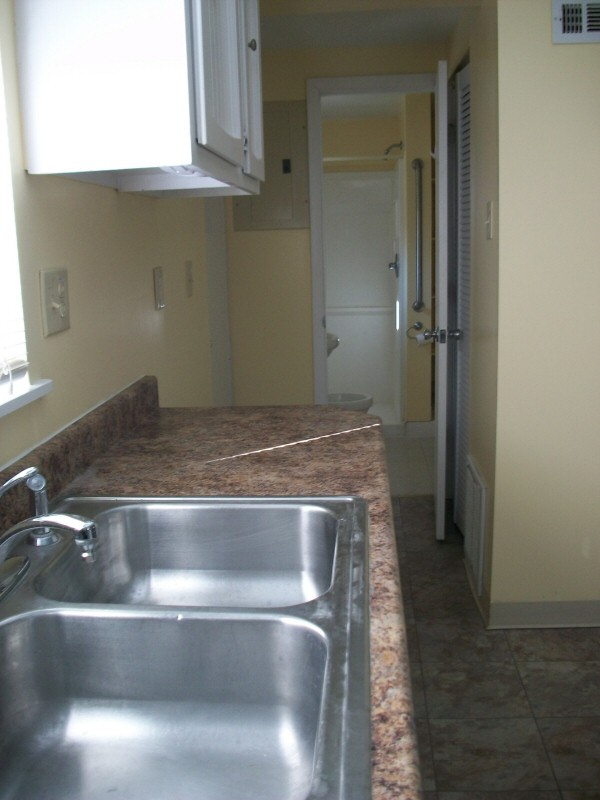 This is a stand-alone cottage, with one bedroom, one bath, living area, kitchen, and a “bonus room” with washer and dryer included. It sits at the front of the complex, on Olive Street, a quiet, low-traffic street.